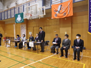 御所見小学校の体育館にて